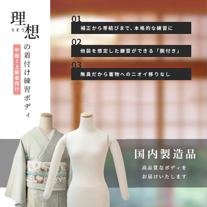 いずれ人様へ着付けをされたい方には腕付きモデルがおすすめ。