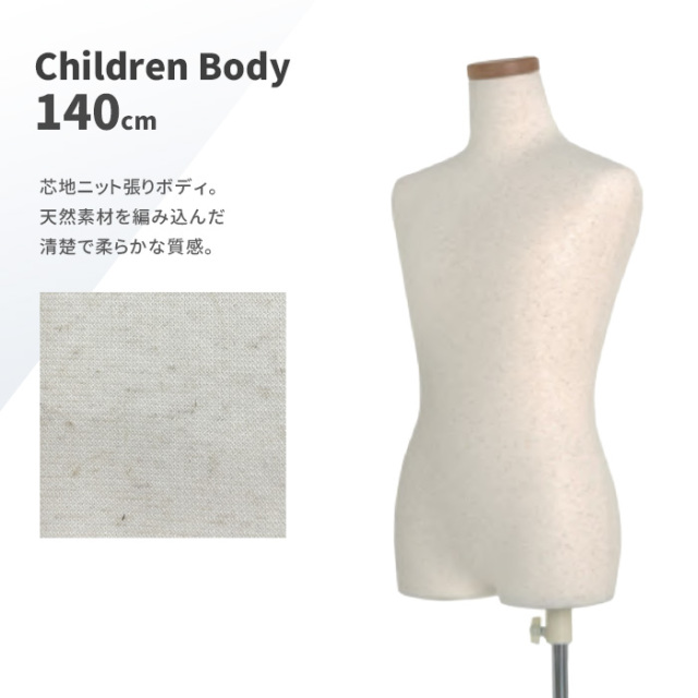 天然素材を編み込んだ独自素材「芯地ニット」を張った子供用トルソー。