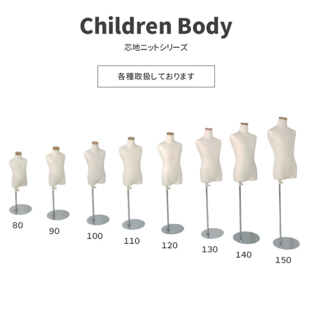 天然素材を編み込んだ独自素材「芯地ニット」を張った子供用トルソー。