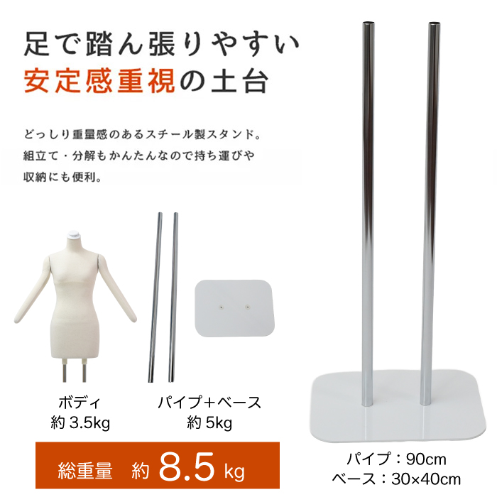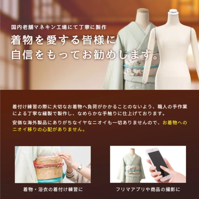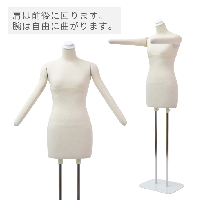 日本製 着付けトルソー 和装トルソー レディース アーム付き 腕あり ボディ 芯地ニット張り 白スチール台 [DIS-088F-135SS]