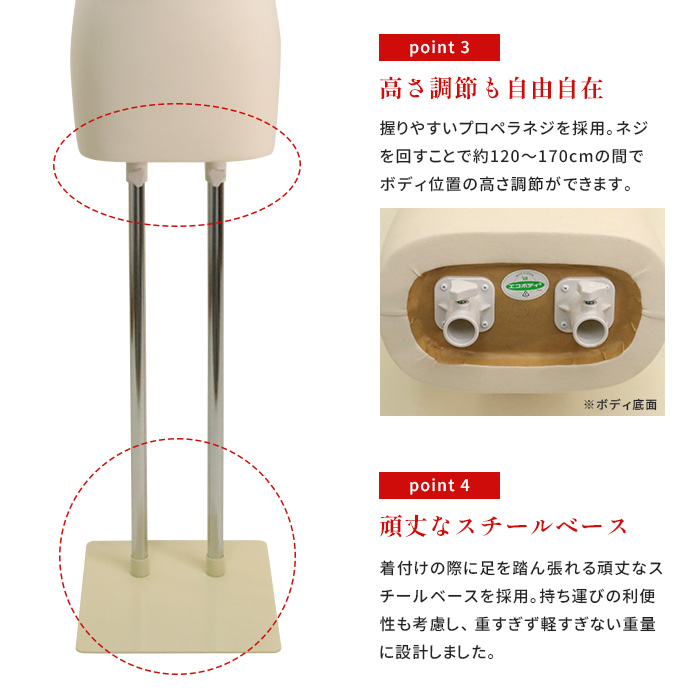 和装トルソー マネキン ボディ 腕なし 肩あり アイボリー スチール台 [DIS-W6-K1]
