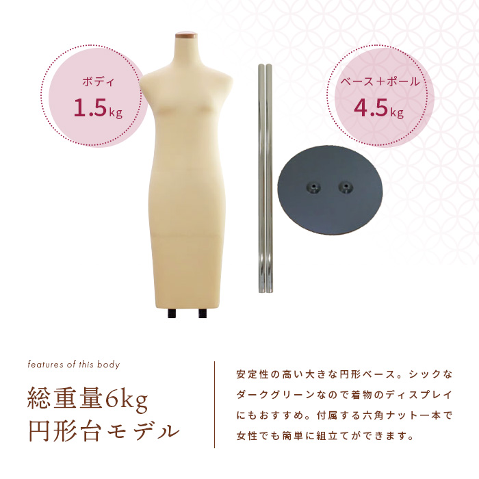 円形ベースはシックなダークグリーンなので着物のディスプレイにも活躍しそう。
