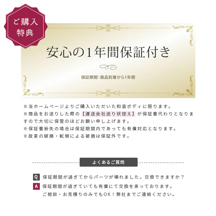 弊社取り扱いの和装ボディは全て日本国内製造品。