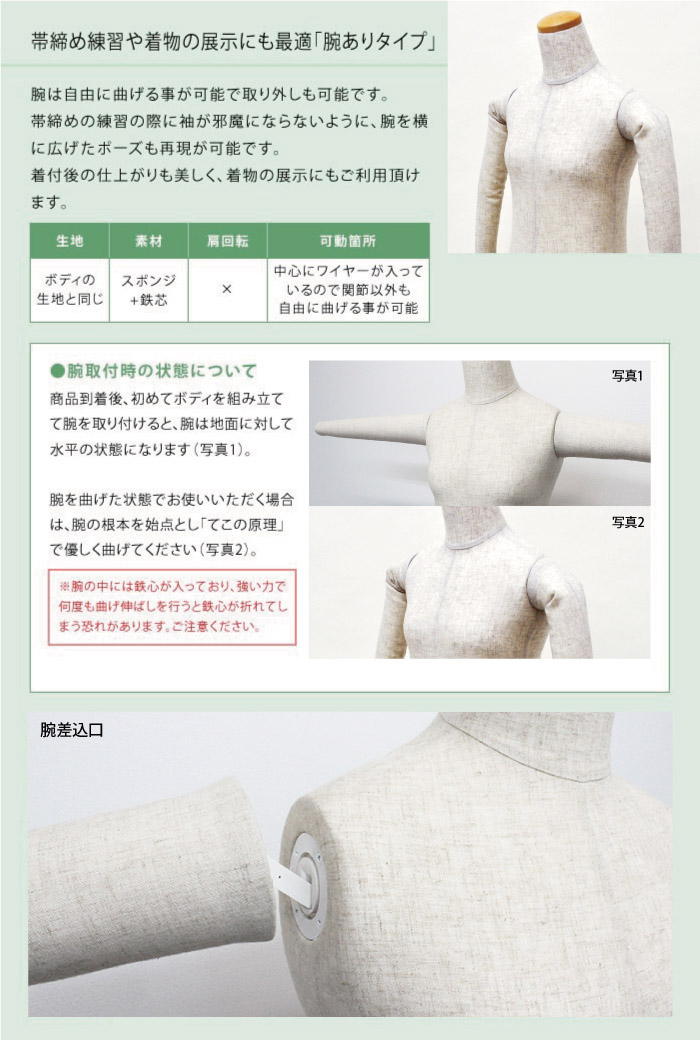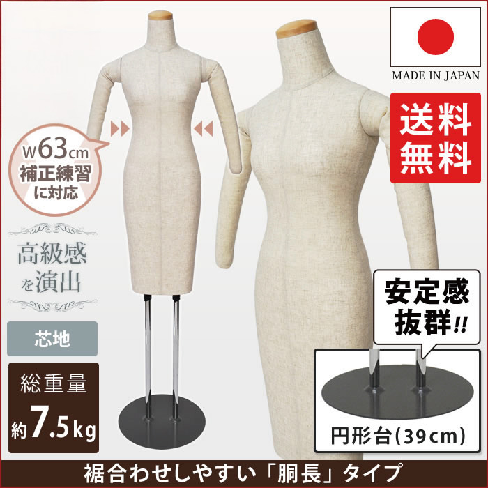和装ボディ 着付け練習用ボディ 着物用マネキン 腕有り 胴長 芯地張り 円形台 |