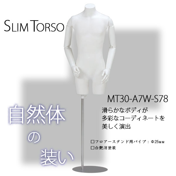 メンズトルソー 可動腕付き スリムトルソー 円形スチールベース ホワイト [MT30-A7W-S78]